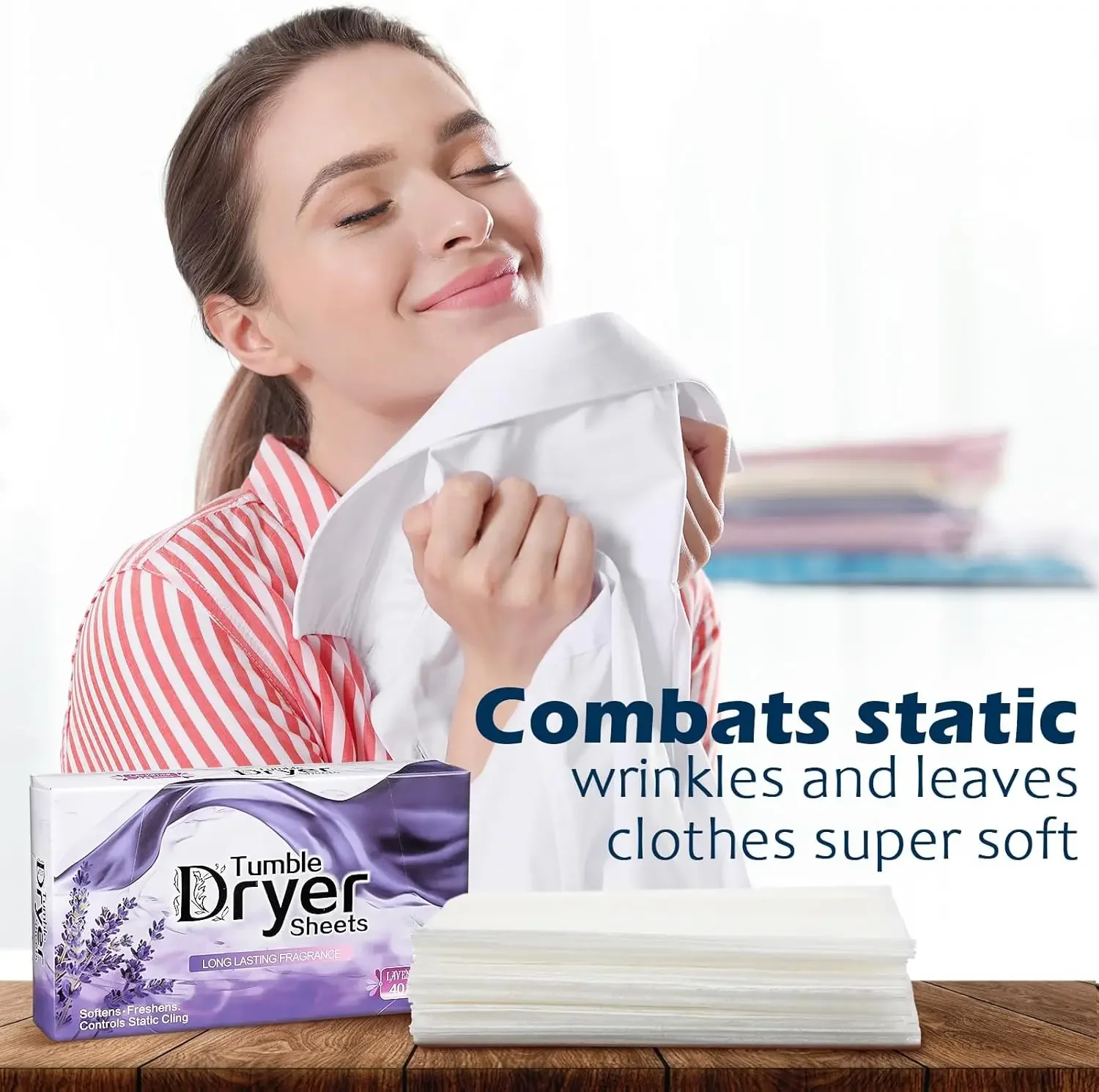 Keep your laundry soft and fresh with these lavender fabric softener dryer sheets.